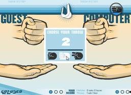 2. 双方同时出拳,石头、剪刀、布。